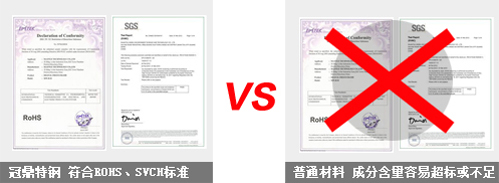材料不達標或不穩定材質主要成分達標,但其他成分含量容易超標或不足,且不穩定,不一定符合ROHS、SVCH等相關標準。